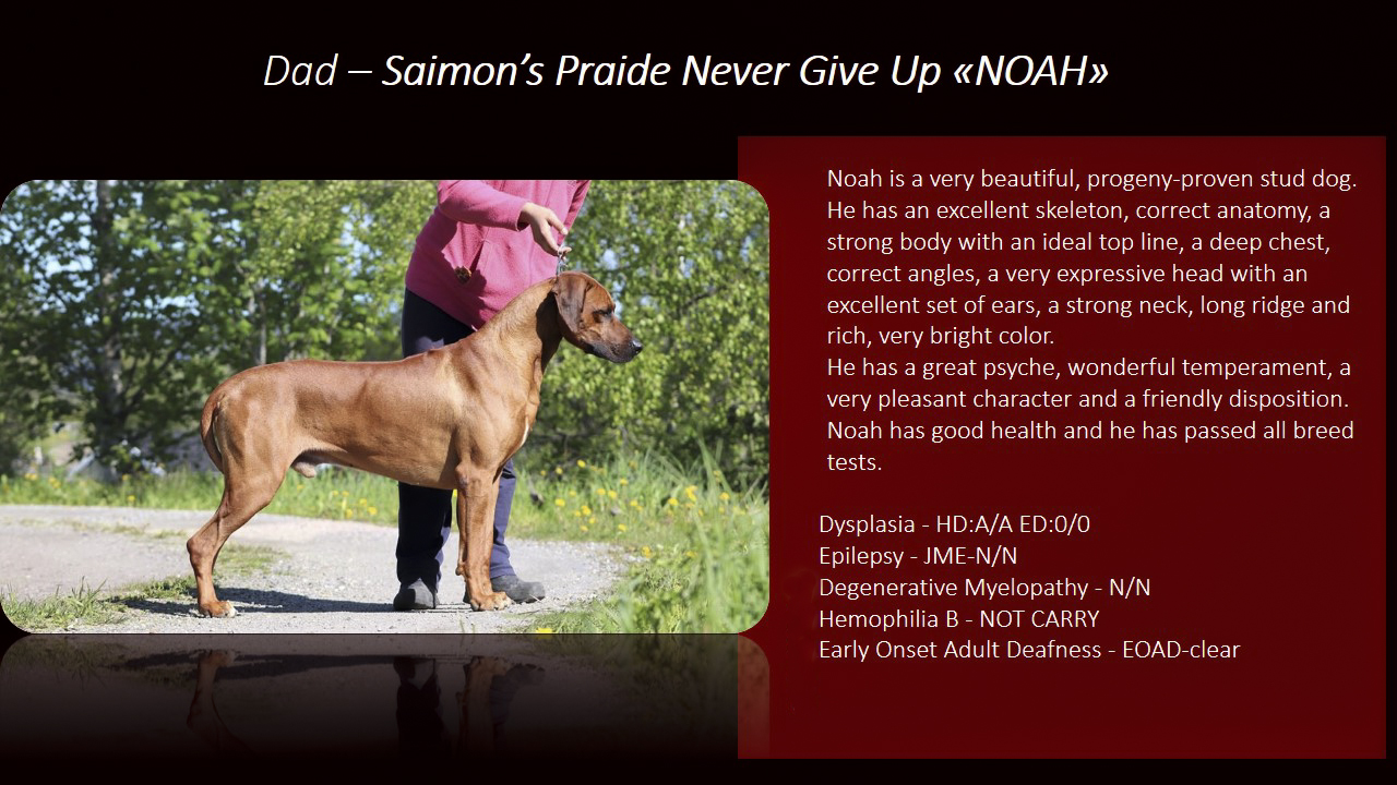 Date of birth: 16.06.2015 | Height: 66 cm | Tooth: Set complete | Bite: N