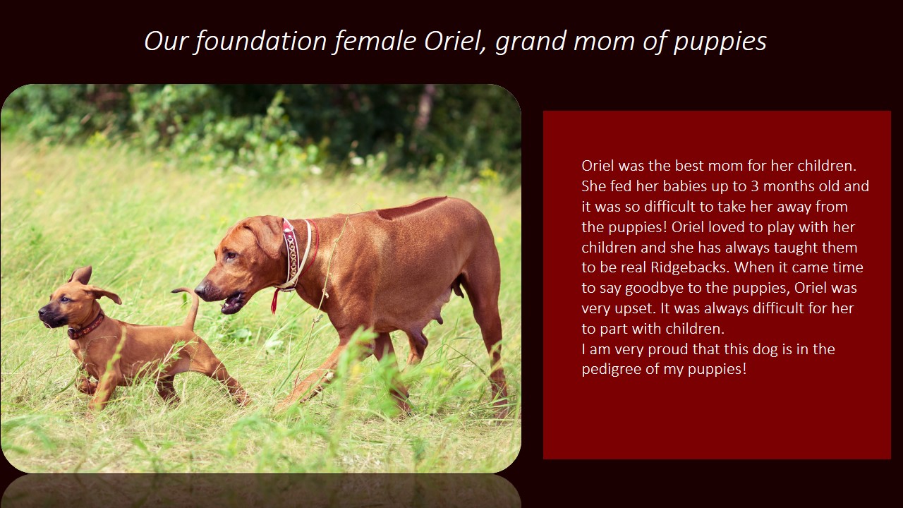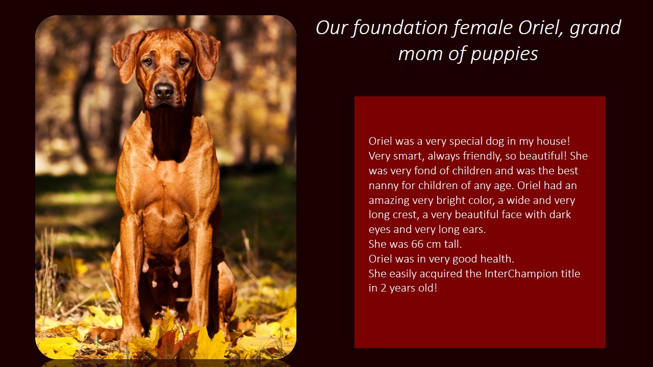 Int CH, Multi CH Podarok iz Afriki Oriel Valeri |